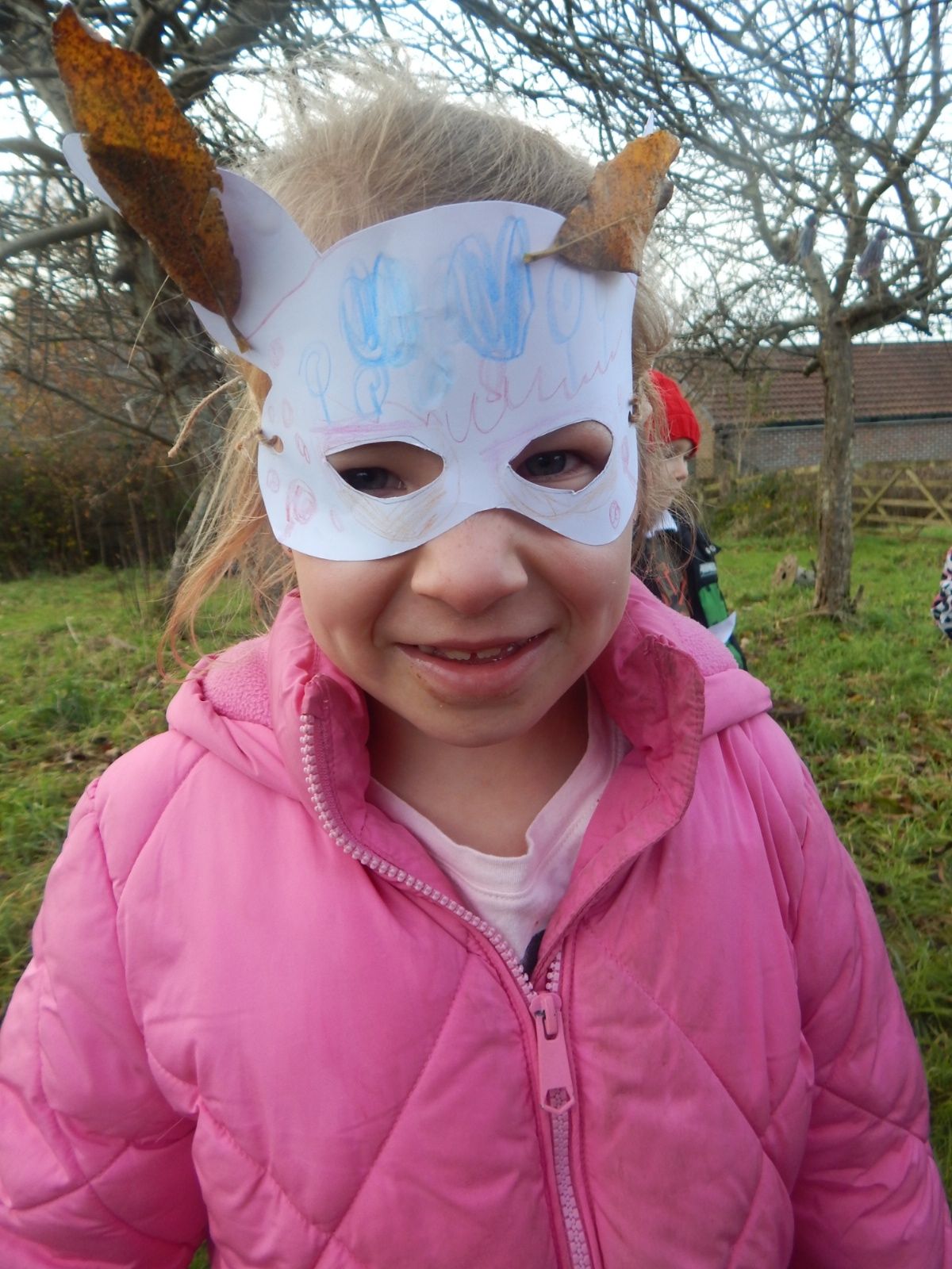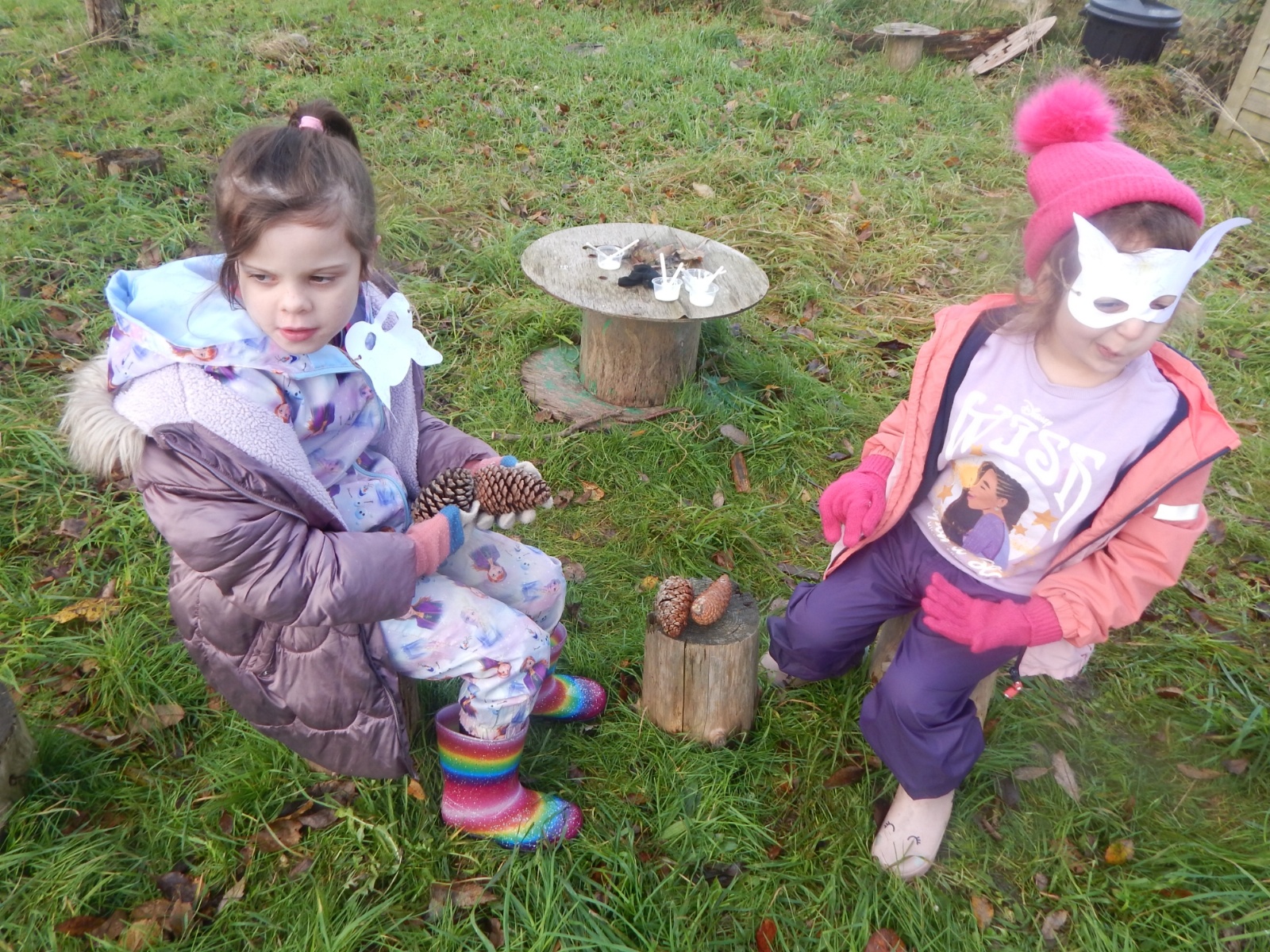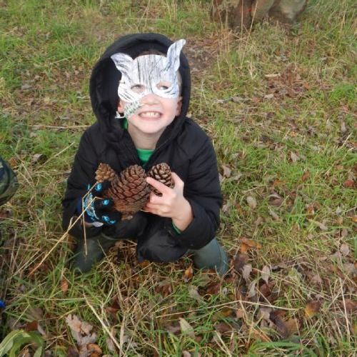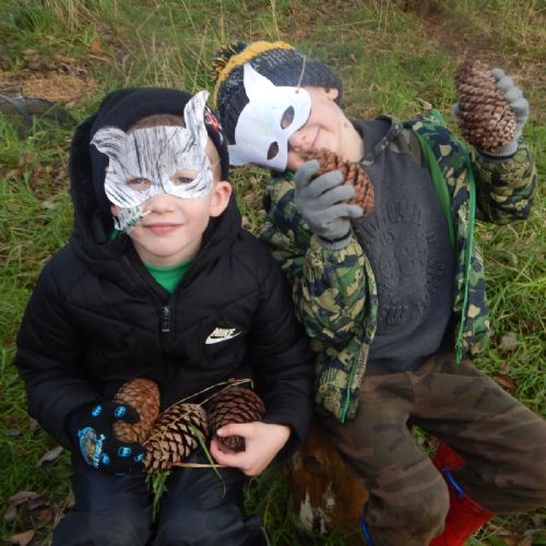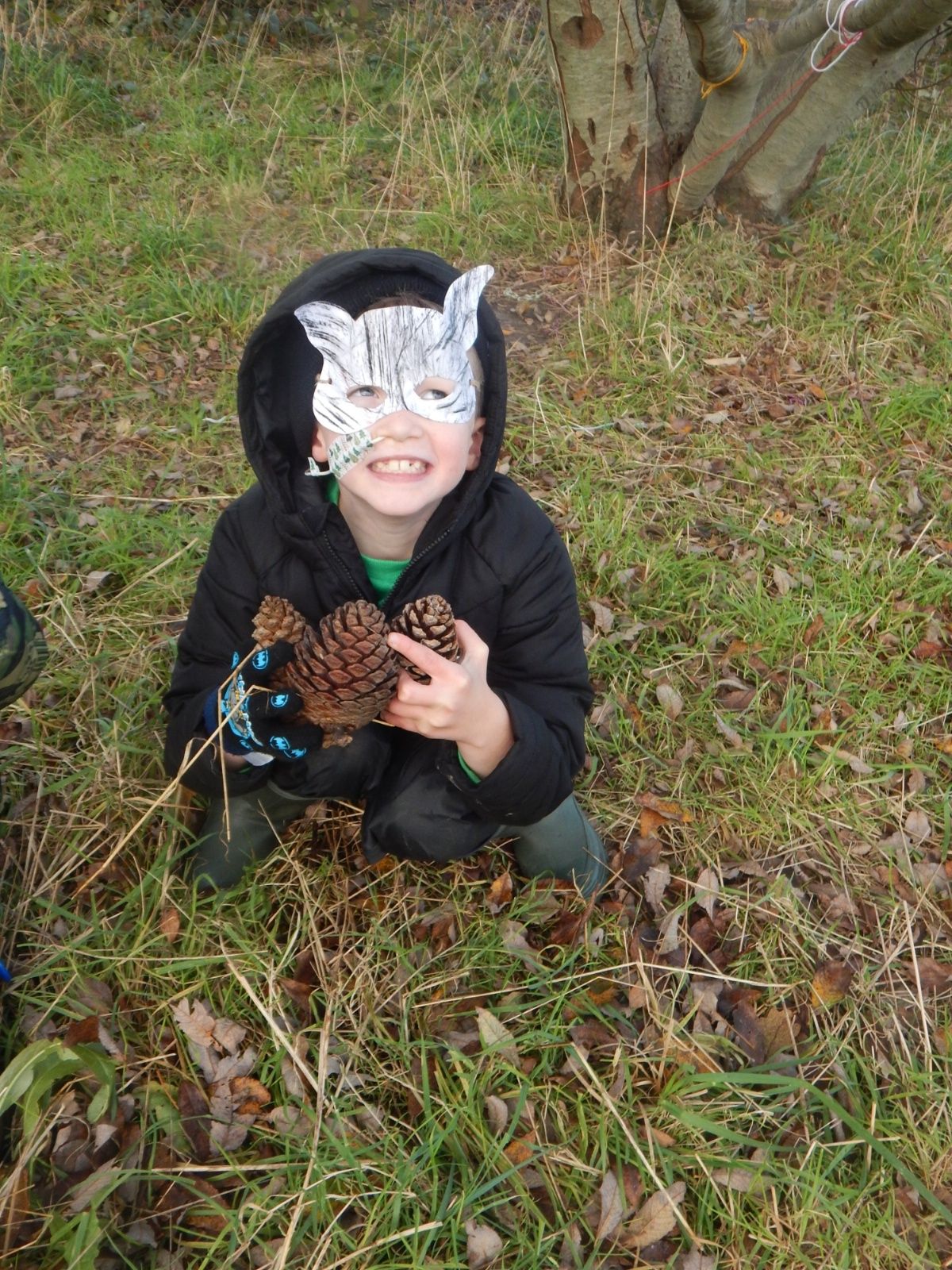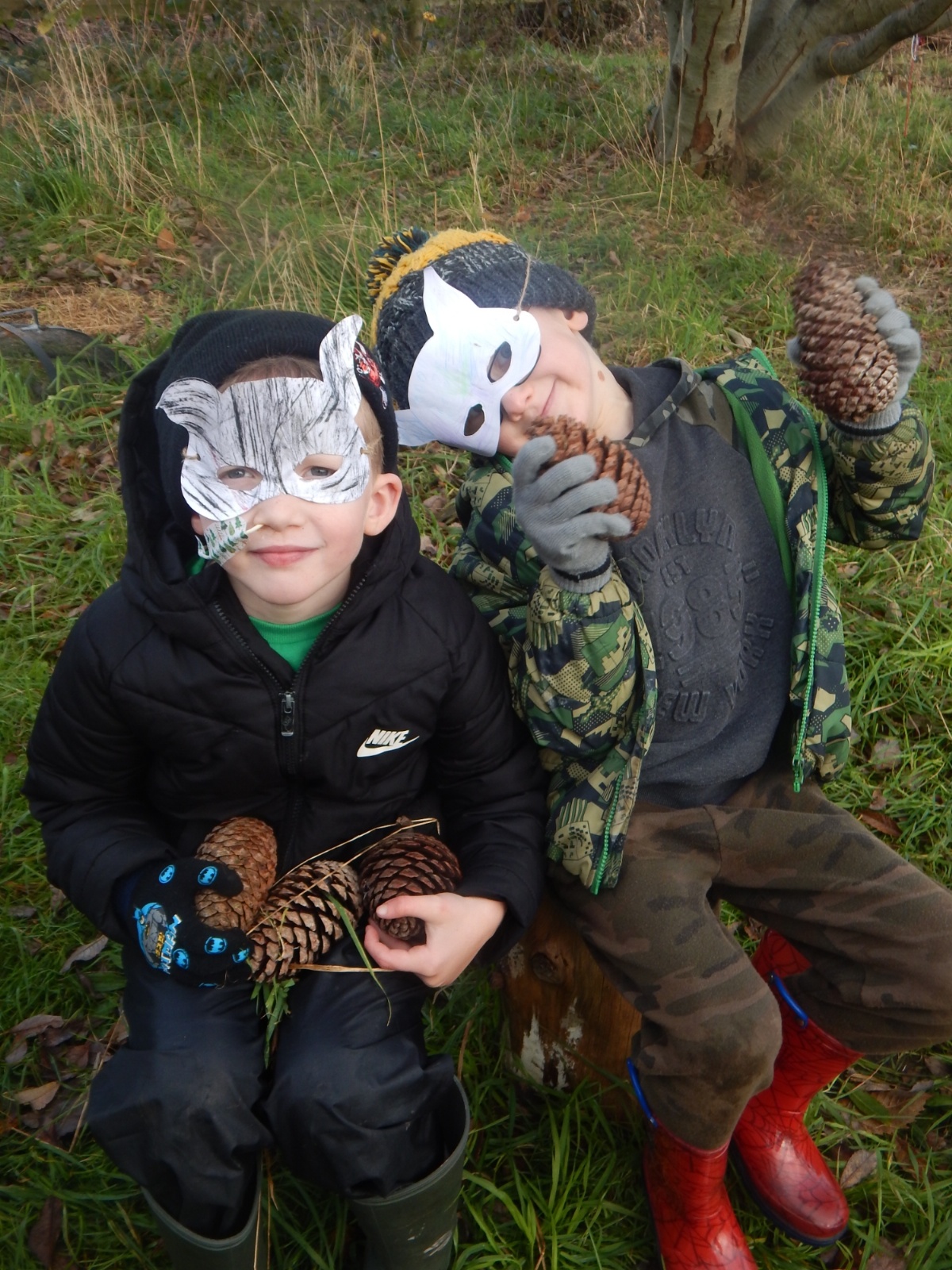 We made squirrel masks and pretended to be squirrels. We collected fir cones and made squirrel dreys.