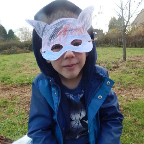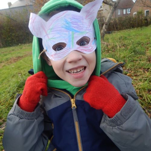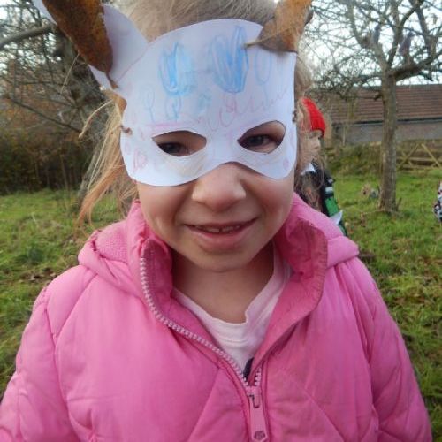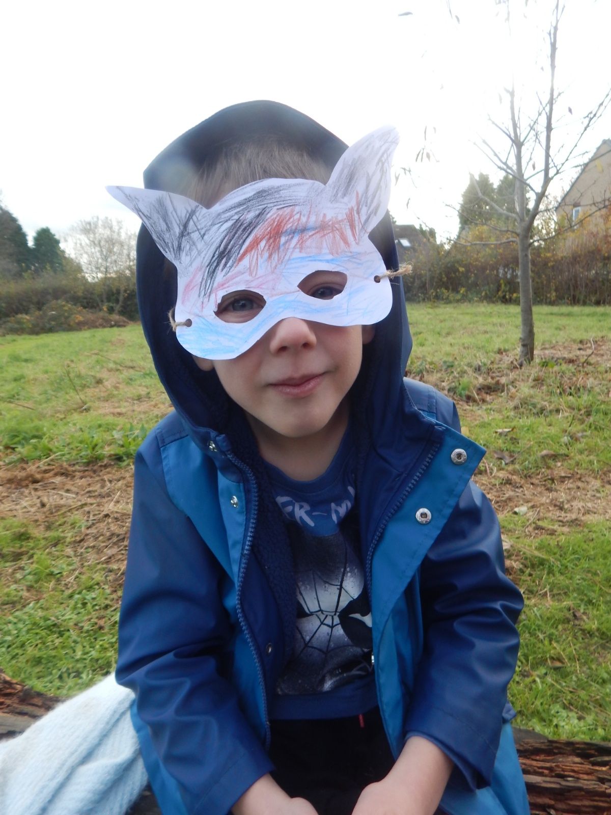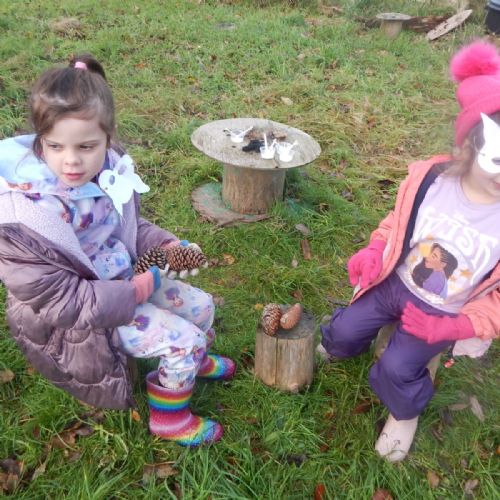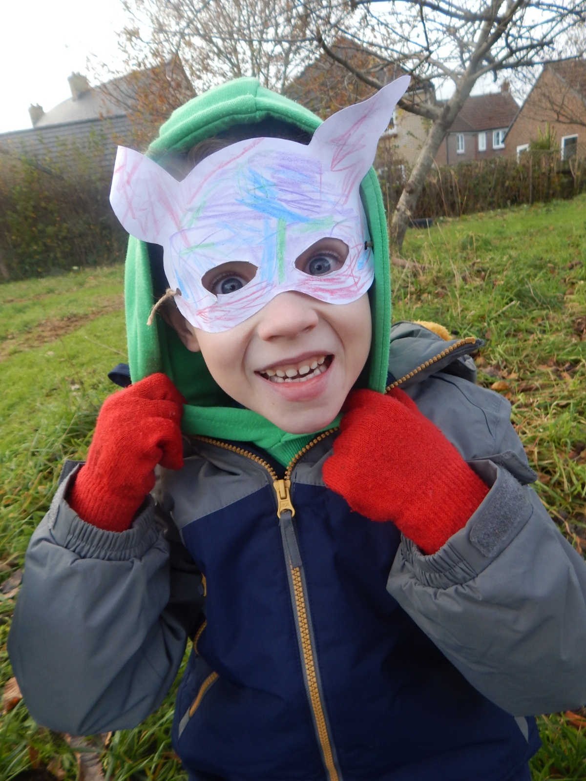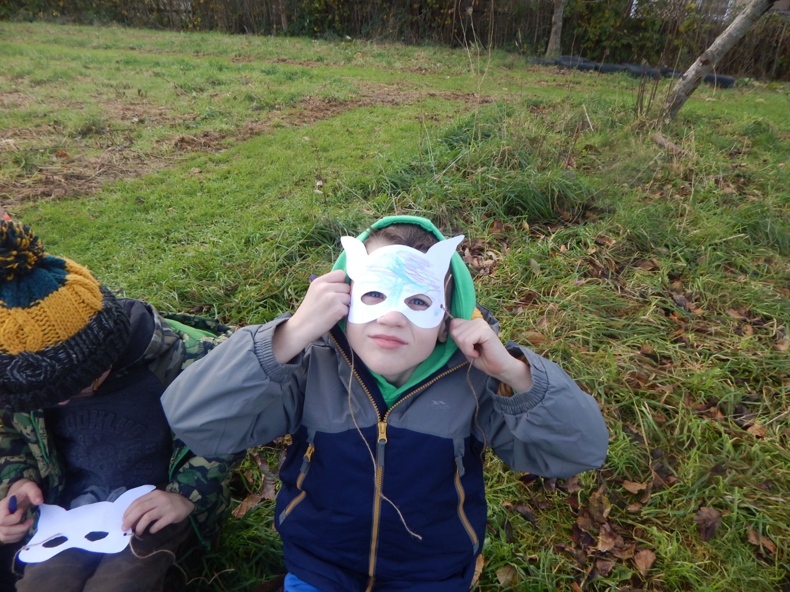 We made squirrel masks and pretended to be squirrels. We collected fir cones and made squirrel dreys.