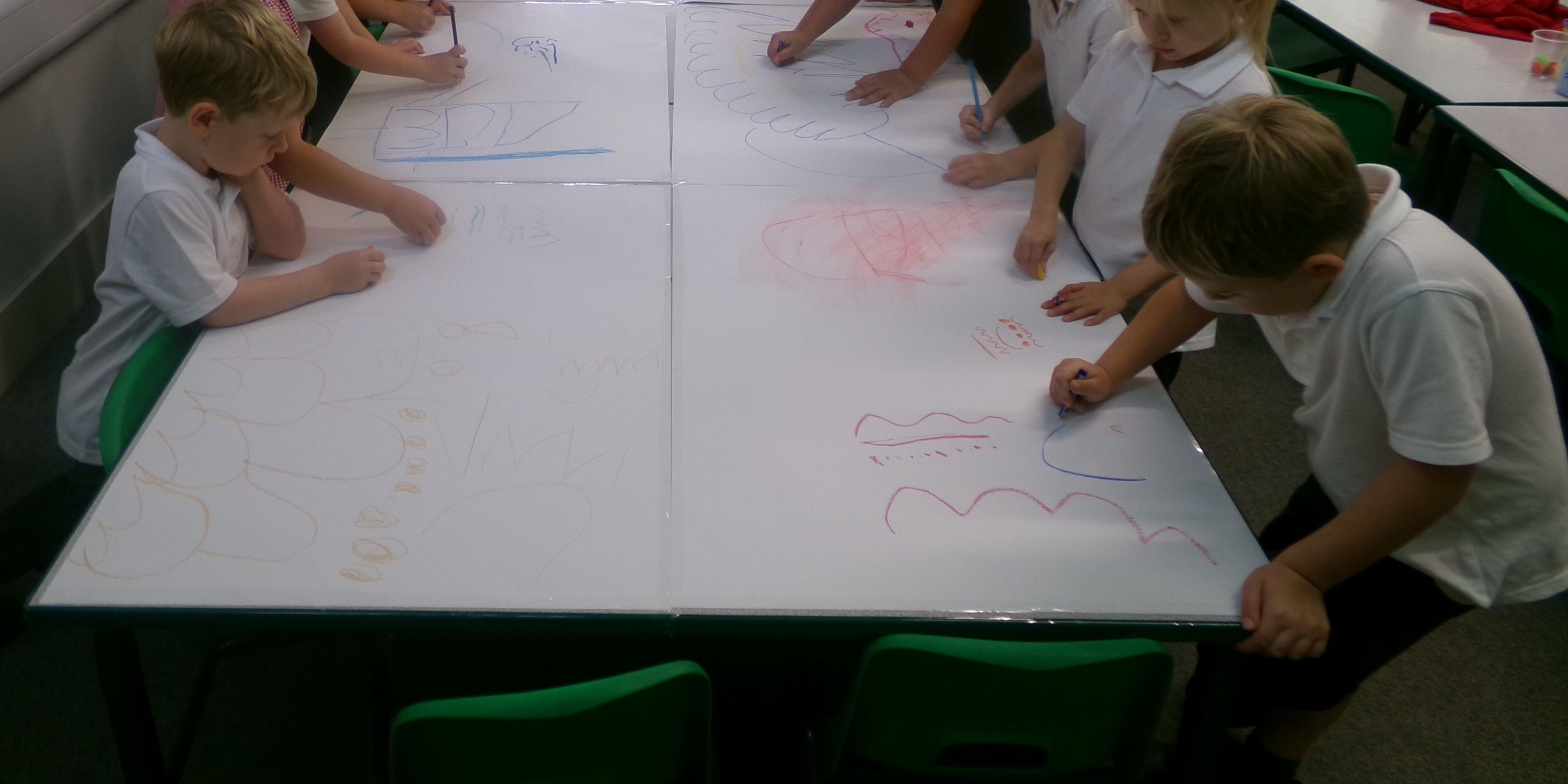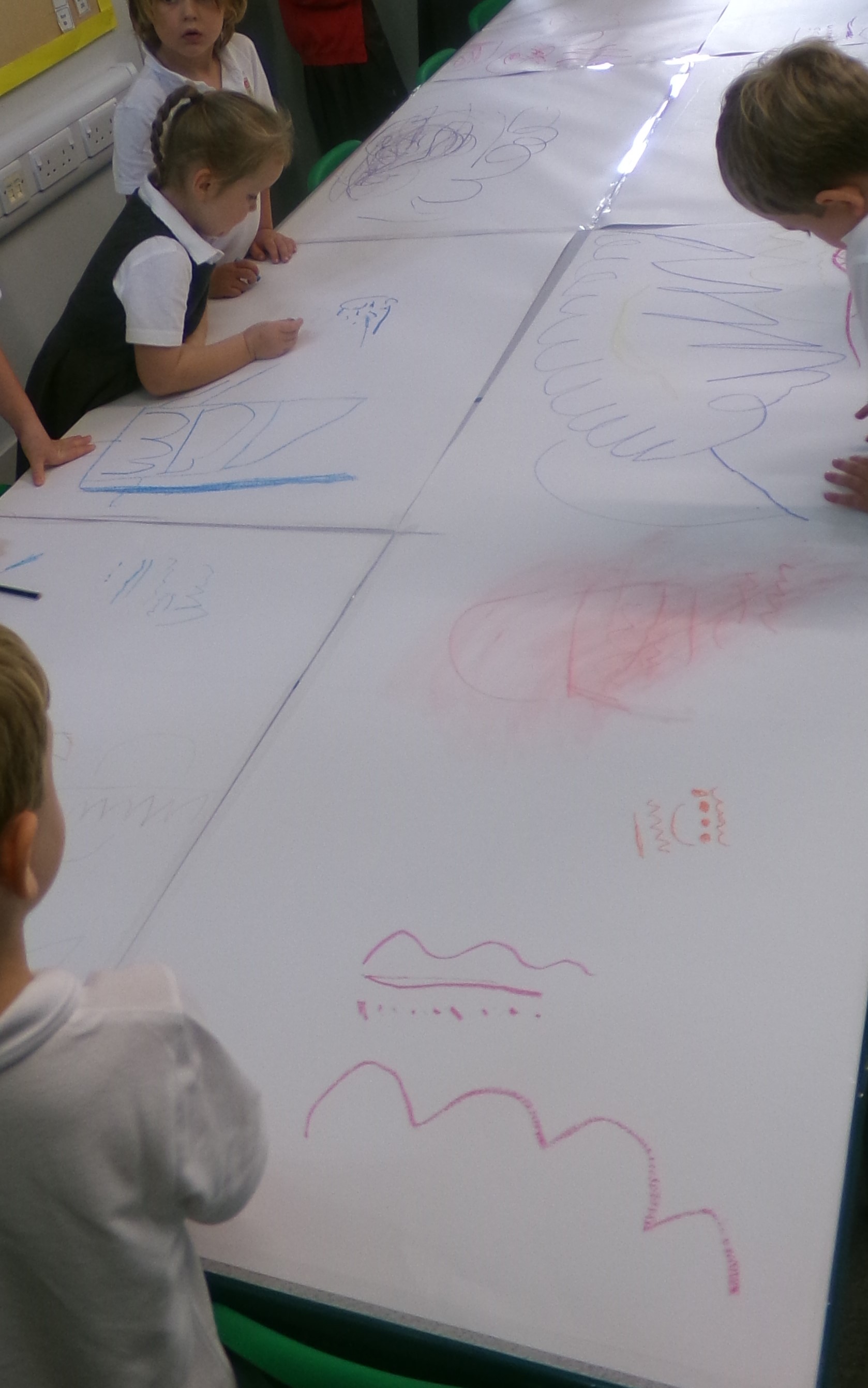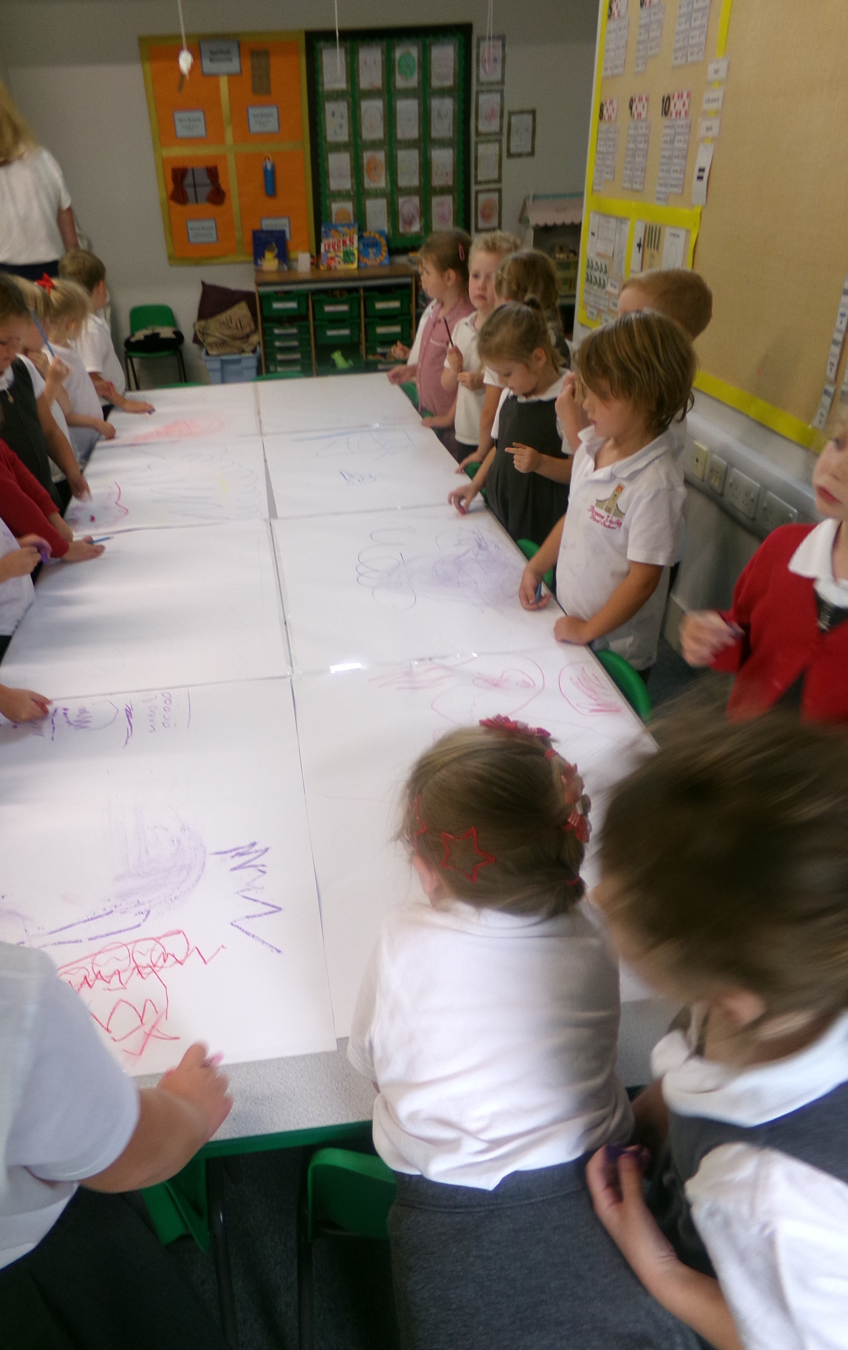 In Art, Year 1 have been exploring control and pressure to create different types of lines. They have been learning to draw different types of lines with a range of materials. They used large paper for their range of lines. The children have also worked outside of the playground drawing lines with chalk.