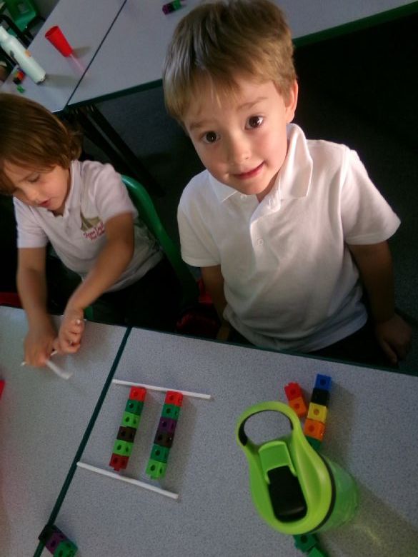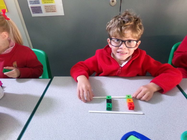 In Maths, we have been looking at the vocabulary 'greater than', 'less than' and 'equal to' and the corresponding symbols. We loved the practical nature of using straws and cubes to help us learn these new symbols.